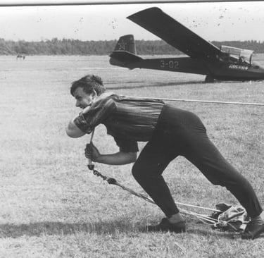 1958m. Balandžio mėn. 20d. buvo pradėta skraidyti nuo Danės upės šlaito pakeliant sklandytuvą amortizatoriumi (guminiu lynu). Tiltas per Danės upę jau buvo atstatytas.
